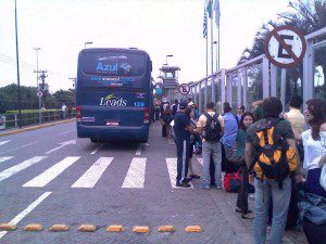 - Pior: eles embarcam um ônibus depois do outro. Havia dois estacionados, mas primeiro enche o da frente; depois o segundo. Será complicado dizer: “– Os 40 aqui da frente vão naquele ônibus e os outros 40 aqui já vão embarcando no ônibus de trás?”