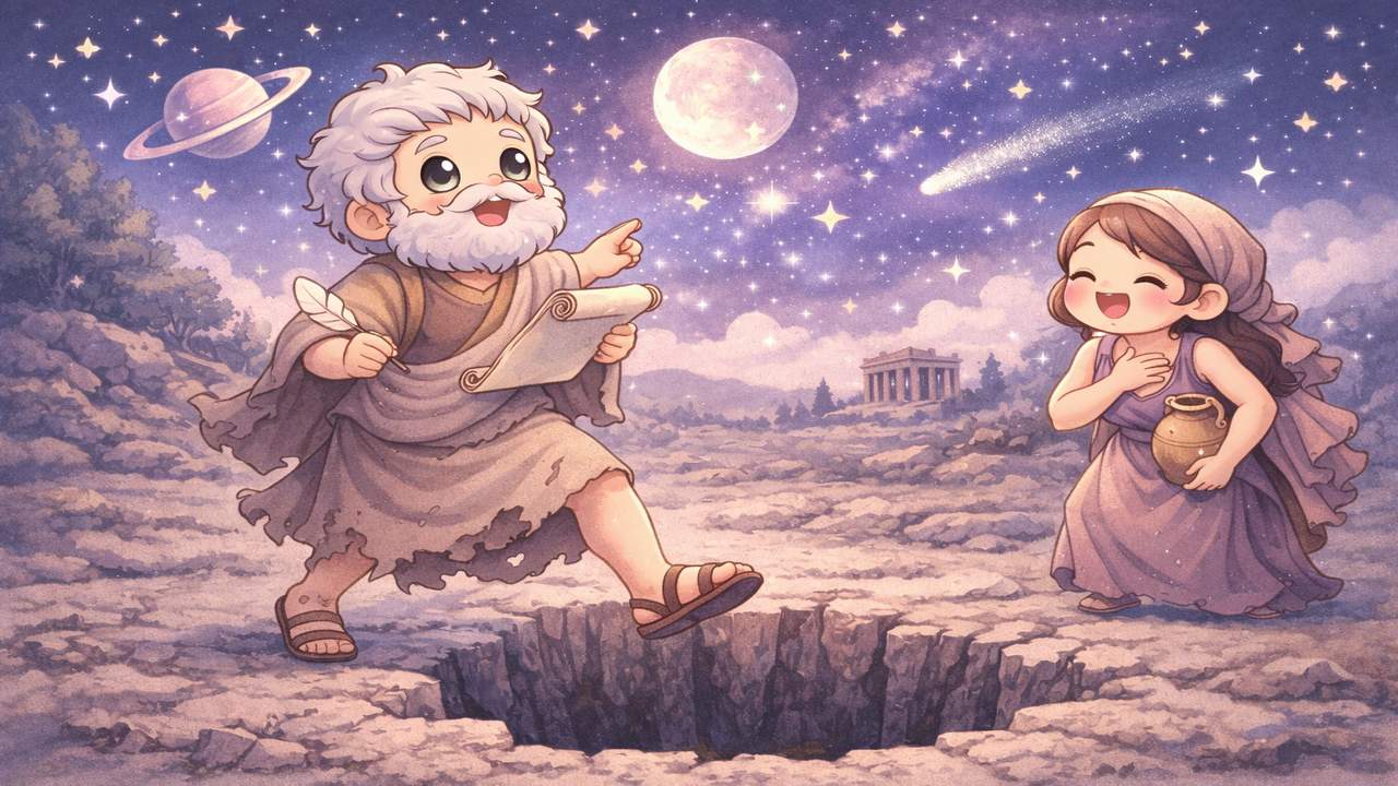 Conta a lenda que Tales de Mileto (não é sobrenome, é o nome da cidade dele, Mileto) examinava as estrelas e quase se foi num buraco. Ou seja, vivia no mundo da lua (o que não é bem verdade, por que previu com a astronomia que haveria uma seca e, PQP, faturou uma bolada com isso).